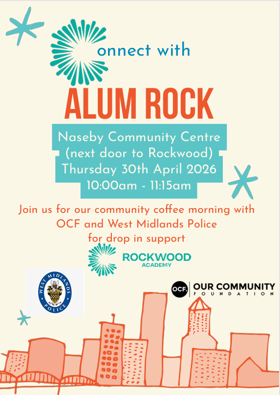 We would like you to attend our community coffee morning Connect with Alum Rock on Thursday 30th April 2026 10:00am – 11:15am at Naseby Community Centre. Our school police liaison officer PC Stringer will be available for drop-in support and questions about keeping Alum Rock safe.