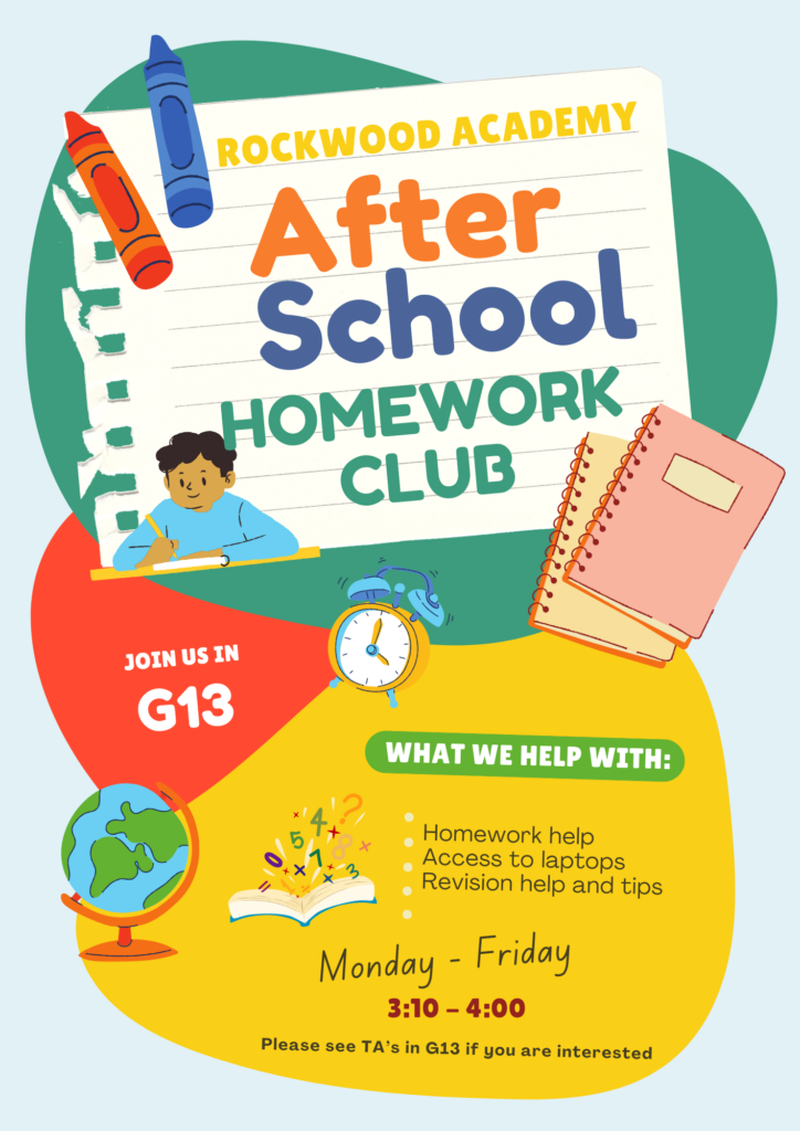 Getting involved isn’t just about going to lessons. Rockwood offers an extensive range of student opportunities through various clubs and societies. The timetable of extracurricular activities is below.